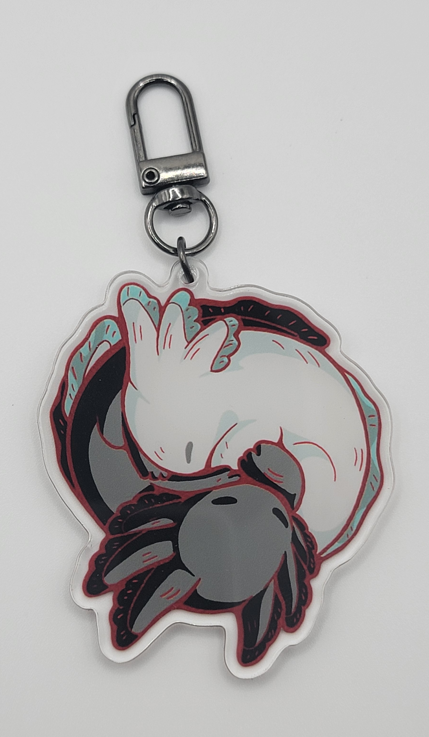 Celebrate balance with the Axolotl Ying-Yang Keychain! Made from sturdy acrylic, this playful amphibian design features the dark and light sides, reminding you there are always two sides to everything. Add a fun, quirky touch to your keys or bag while embracing harmony in style.