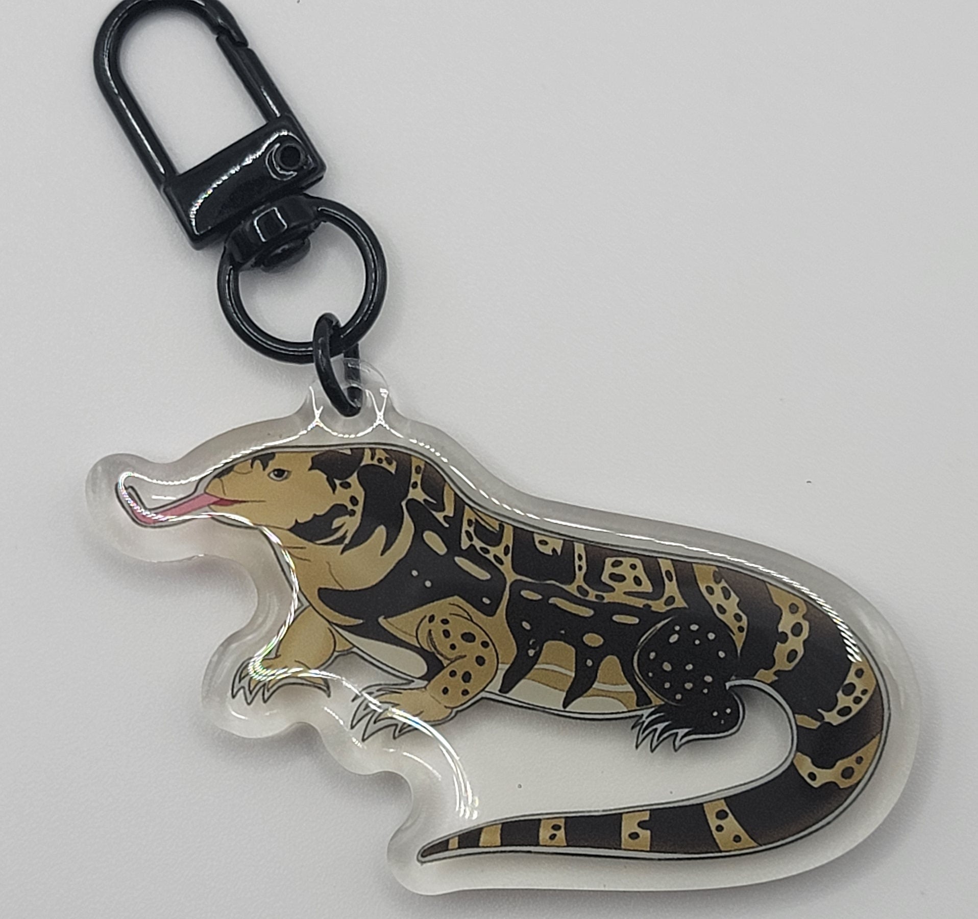 Celebrate your love for unique reptiles with the Cartoon Tegu Keychain, inspired by our energetic tegu. This expertly designed keychain highlights the true look and vibrant personality of these amazing lizards, making it an ideal accessory for reptile fans. Durable and full of detail, it’s a fun and stylish way to keep your keys in order while expressing your passion for exotic animals.