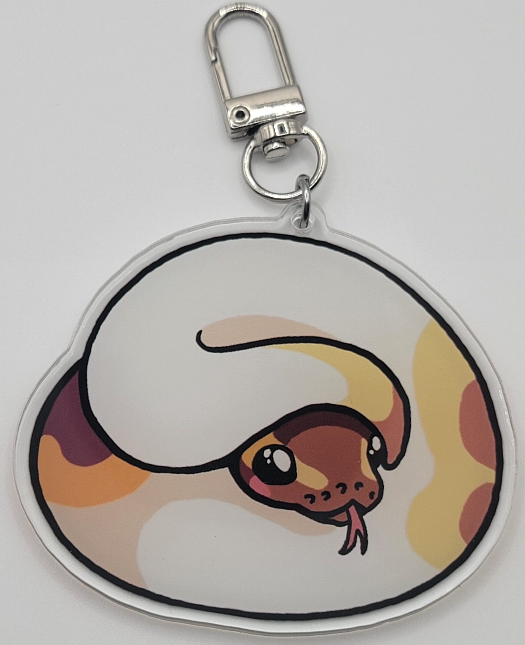 This adorable Chibi Ball Python Keychain captures the charm of a ball python curled up in a cozy, hiding pose. Perfect for reptile lovers, it adds a playful touch to your keys or bag while showing off your love for these gentle snakes. Compact and cute, it’s a fun way to carry a little wildlife whimsy wherever you go.