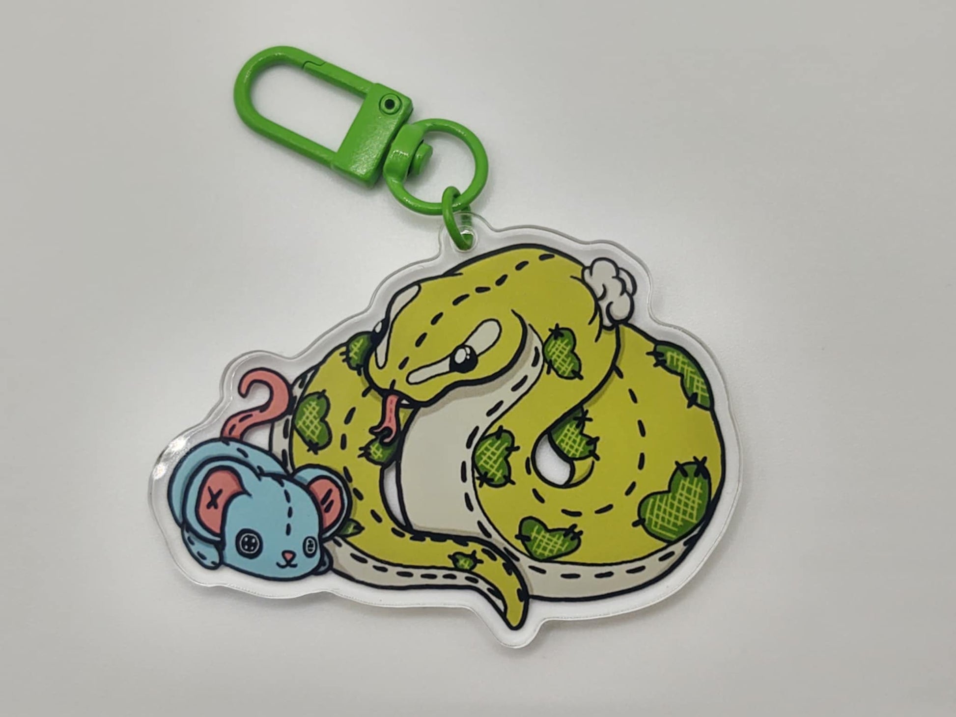 Carry a little charm wherever you go with this adorable stitched ball python keychain! Featuring a cute stuffed animal ball python with a tiny mouse, this accessory adds a playful touch to your keys, bag, or backpack. It’s lightweight, cute, and perfect for reptile lovers who want to showcase their passion in a fun and unique way.